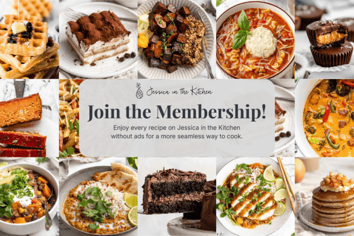 Ad-free access to every Jessica in the Kitchen recipe on the site. You’ll be able to browse and cook seamlessly without ads, popups, or interruptions, like a digital cookbook!