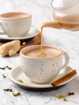 If you have any extra spiced chai or you want to make a big batch, you can refrigerate it for 2 to 3 days in an airtight container. Warm over low on the stovetop or in the microwave.