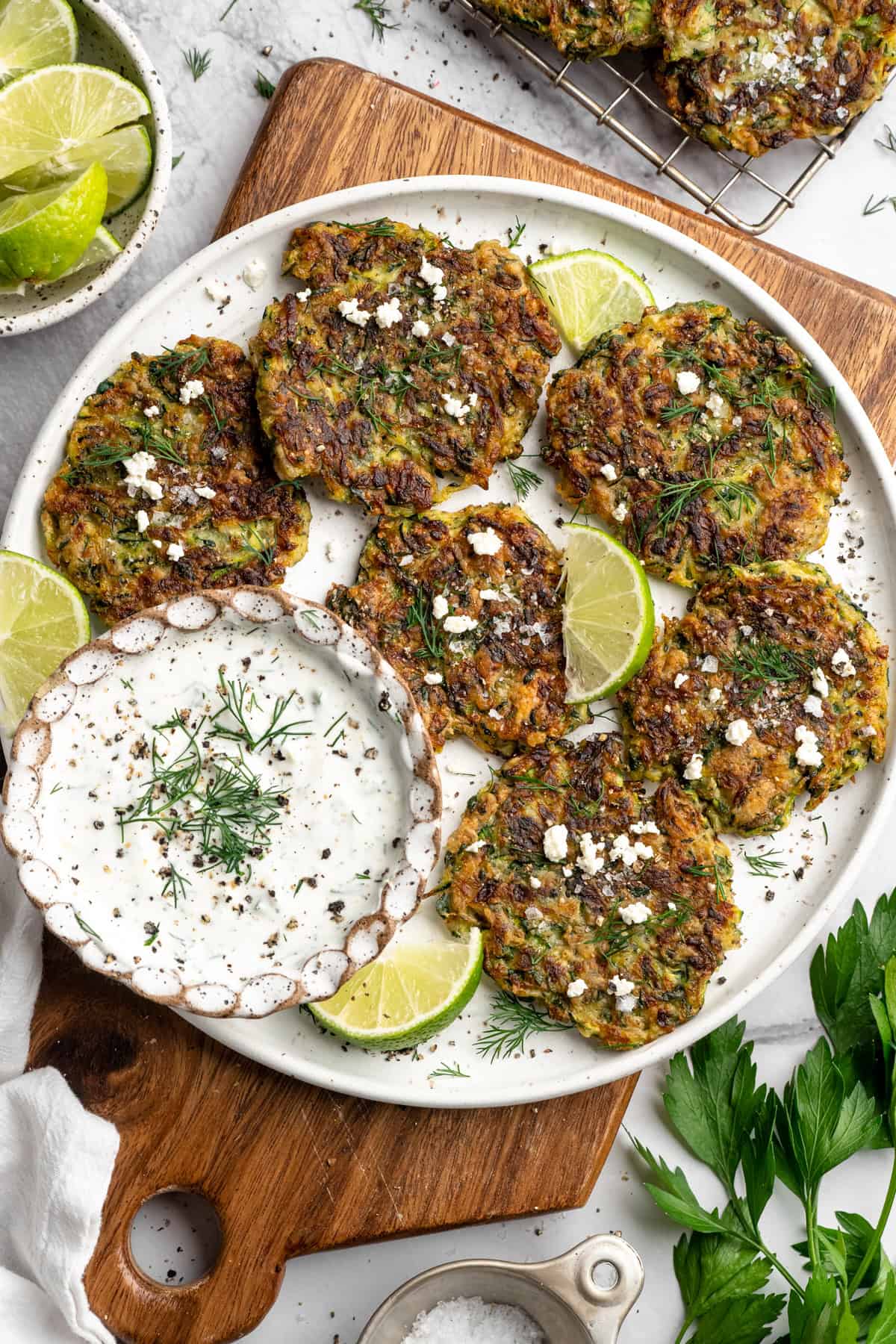 I think “crispy” might just be one of my favourite words when it comes to food. I just can’t resist and these zucchini fritters deliver LOTS of crispy goodness in every bite. Let’s talk about why you’ll want to add this recipe to your collection.